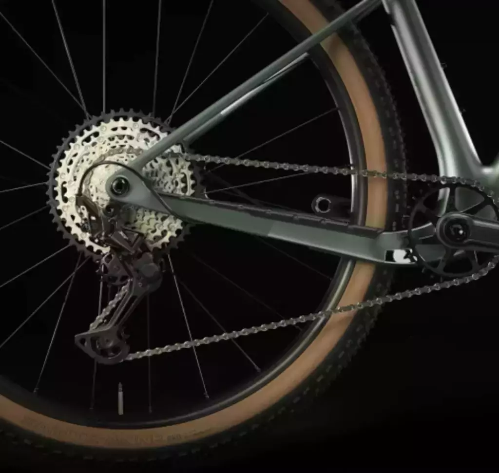 Un cuadro de Carbono OCLV Mountain con tecnología IsoBow que amortigua las pistas. Una horquilla RockShox Reba RL con 120mm de recorrido, un resorte Solo Air, amortiguador Motion Control y bloqueo remoto. Una combinación selecta de componentes Shimano SLX y XT de 12 velocidades, frenos hidráulicos, Bontrager Line Dropper y ruedas sin cámara Bontrager Kovee Comp de 29".